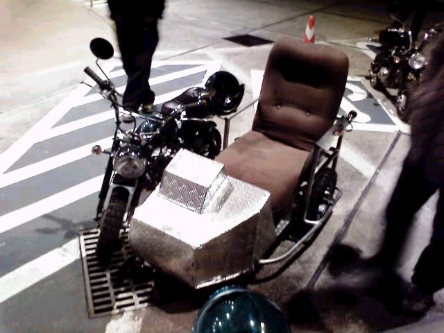 で、深夜のPAに、こんなバイクが!