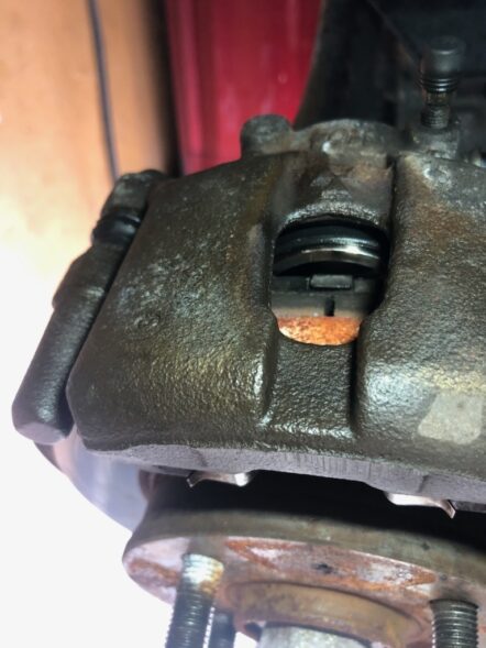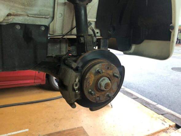 今回のご依頼は右前のブレーキがおかしいと。