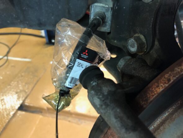 ブレーキホースを外して、オイルが漏れないように=3=3