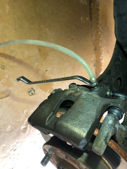 片側のみ。ピストンも一つだけ。ホースも一本だけ。ブリーダーも一ヶ所だけ。